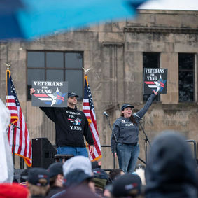 A: We tell our stories on the blog and in videos, we provide a community for veterans in our slack group (ask to join!) and we offer t-shirts for our fellow veterans that support Yang